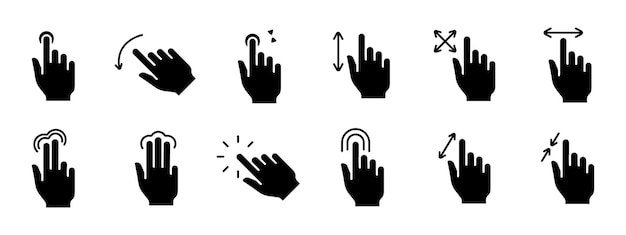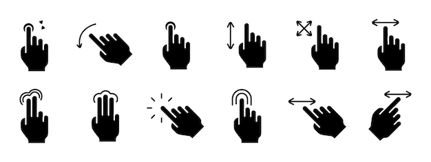 Gesture set icon Swipe tap doubleclick rotate pinch zoom scroll gesture touchscreen interaction user interface hand movement multitouch gesture swipe pinch control